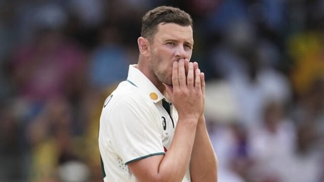 “Josh Hazlewood relatou dor no tendão de Aquiles esta semana durante sua reabilitação devido a uma recente lesão no tendão da coxa”, disse um porta-voz da CA em comunicado. “É um problema de baixa qualidade e espera-se que ele volte a correr e jogar boliche na próxima semana.”
