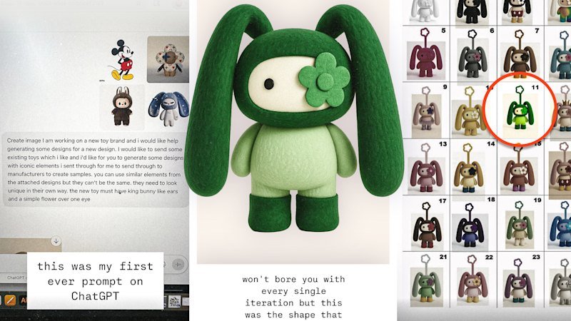 Os projetos finais, disse Hendry, foram aperfeiçoados durante um intercâmbio de quatro meses com seus fabricantes, onde passaram por 35 “iterações e melhorias”. Mas o décimo primeiro boneco da linha completa de JuJu parece idêntico ao que ChatGPT cuspiu após o prompt 37.