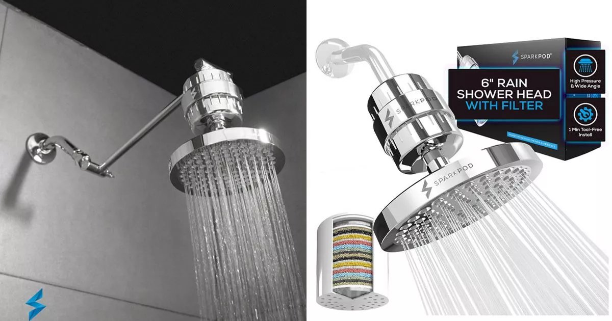 A lista da Amazon diz que o novo chuveiro filtrado do SparkPod contém uma versão aprimorada de carvão ativado de alta qualidade, vitamina C e bolas minerais / cerâmicas, filtrando o dobro de metais pesados, cloro e cloramina. O filtro deve ser substituído a cada dois ou três meses para obter melhores resultados.