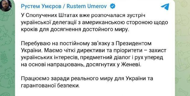 “Rustem Umerov excluiu a publicação sobre o início das negociações com os Estados Unidos em Miami”, escreve a publicação.